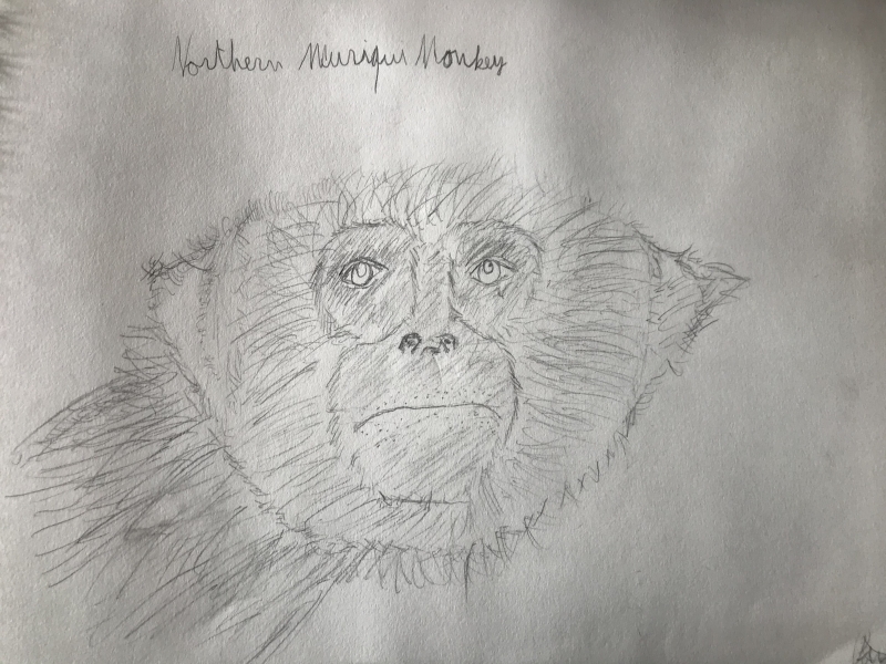 The Northern Muriqui (or Woolly Spider) monkey, drawn for withNature2020 by Paulo Aben, as part of a digital participation project since pandemic restrictions in 2021 prevented a physical image being made in Belo Horizonte, Brazil.