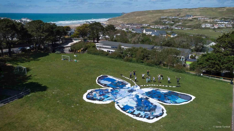 The Silver Studded Blue was created by artist Pip Bryson with the help of the Perranporth Marine Conservation Group, Cornwall Butterfly Conservation, Cornwall Wildlife Trust and Dynamic Dunescapes, at Perranporth Community Primary School in the UK. Image courtesy of Jamie Turnbull.